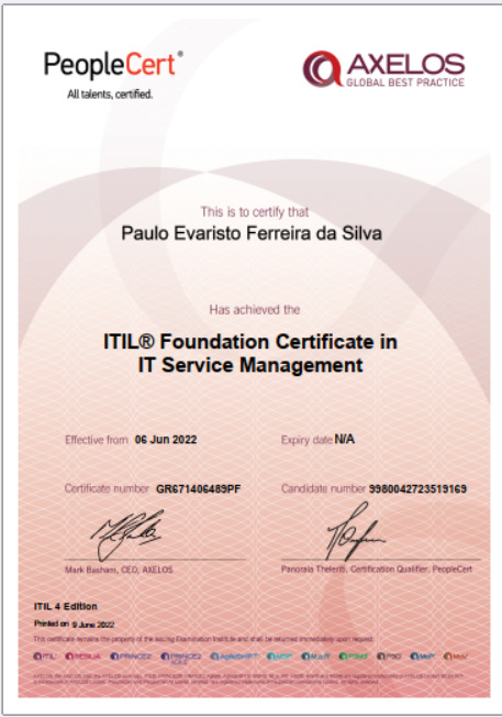 Certificações: ITIL 4 | DevOps Professional Exin (2022) | Docker Foundations Professional